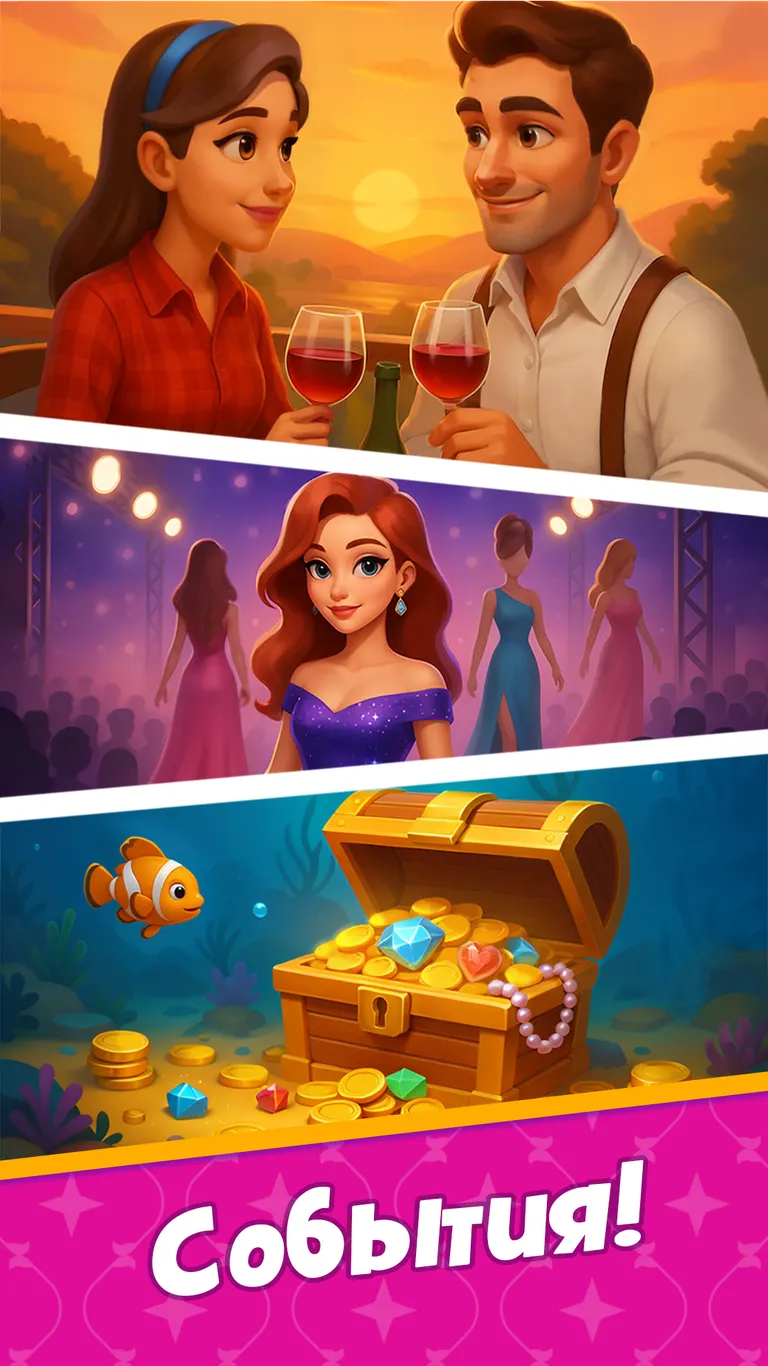 Основа игры — классическая механика «три в ряд» с элементами крафта и экономического симулятора. На каждом уровне тебе нужно собирать комбинации из определённых предметов, чтобы выполнить заказ посетителя или получить ресурсы для ремонта. Вот как это работает: